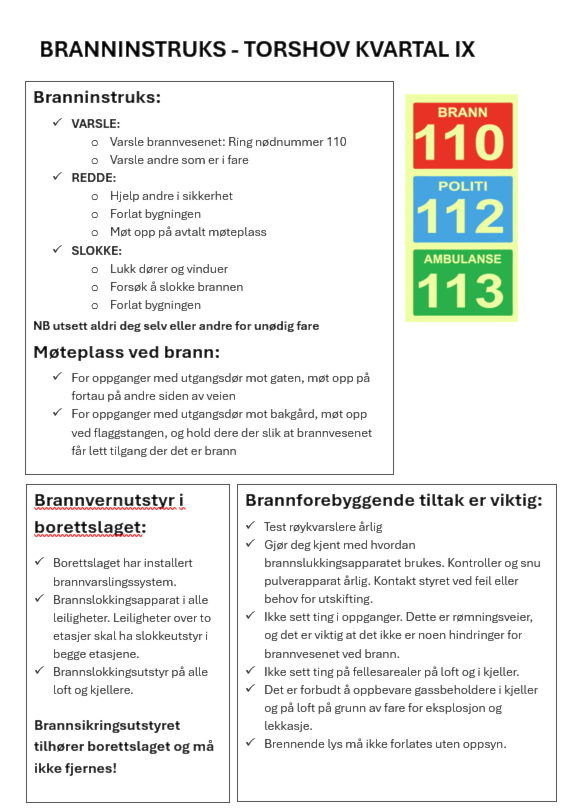 Branninnstruks for borettslaget: